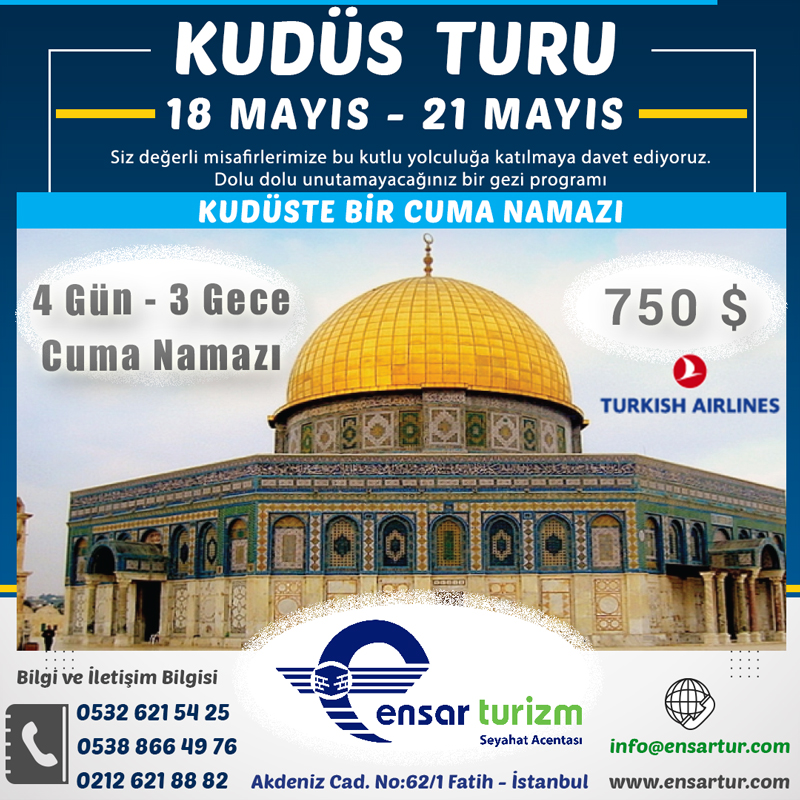 KUDÜS TURLARINDA GRUPLA BERABER DÖNÜŞ YAPMAYAN (İSRAİLE KAÇAK KALAN KİŞİLER) 15.000 DOLAR ÖDEMEKLE YÜKÜMLÜDÜRLER.