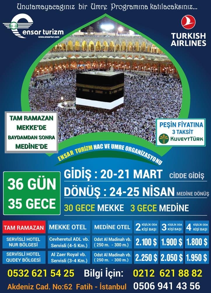 - Kudüs üzeri Umreye katılan misafirlerimiz için kişi başı 15000 $ teminat mektubu vermemiz hasebiyle turun bitiminde turla dönmeyip firar ettikleri takdirde 15000 $ vermeyi taahhüt eder