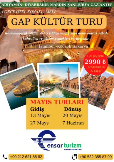 ADIYAMAN, DİYARBAKIR, MİDYAT, MARDİN, ŞANLIURFA, GAZİANTEP TURU